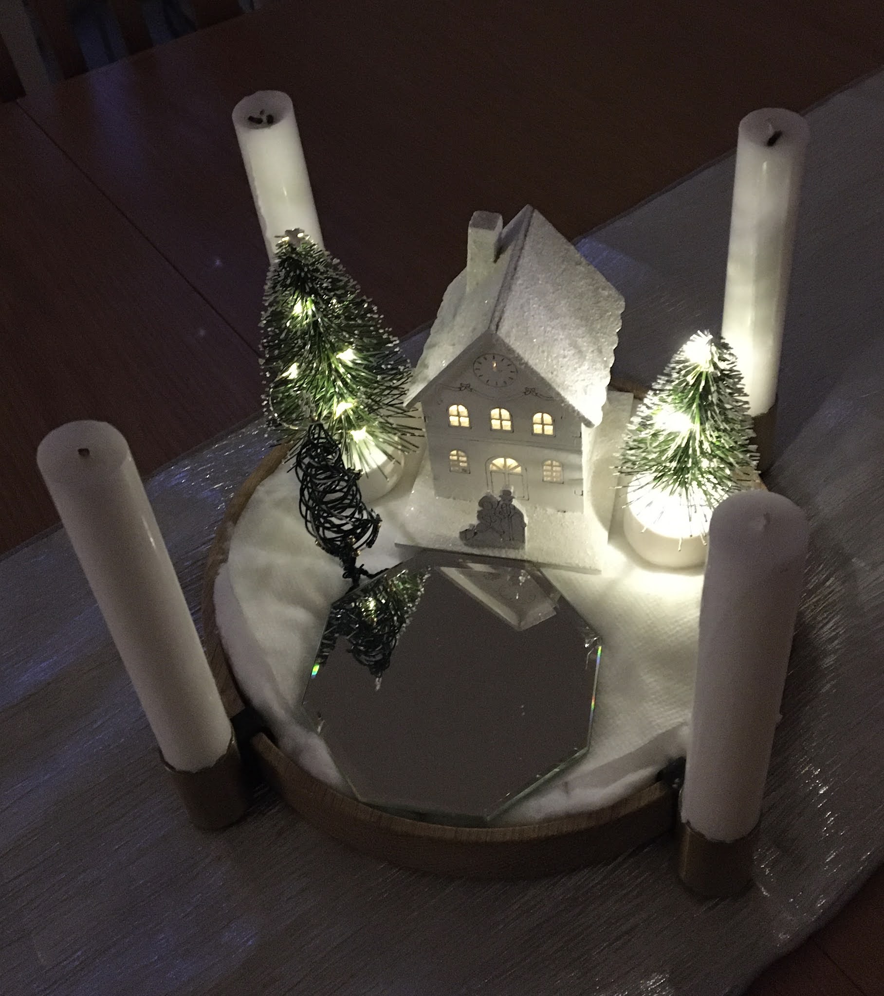Lastly, this little, wire Christmas tree, which I found very hard to do. It's made by using a braiding technique but it found a place in my table centre...
